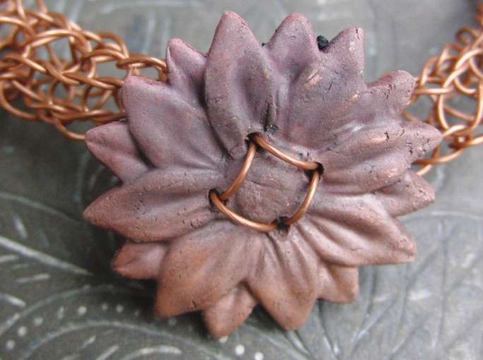 En färg som bryter av i allt det vintervita landskapet. Kopparsmycken, som får så spännande färger vid bränningen. Ingen färg blir lik den andra. Lite som rakubränning av keramik.