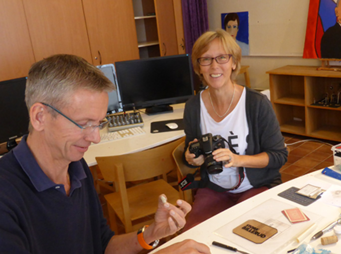 Det var ett gäng duktiga konstnärer och det blev både örhängen, ringar och halshängen. Det händer något med själen när kreativiteten sätter till. Det blir fokusering på högsta nivå, och deltagarna försvinner in i en skapande värld och svarar knappt på tilltal.